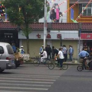 11月5日上午11时许,广东东莞中堂市场发生一故意伤害案,一名男子持水果刀在闹市中刺伤三名女子。图为案发现场。 李映民 摄...